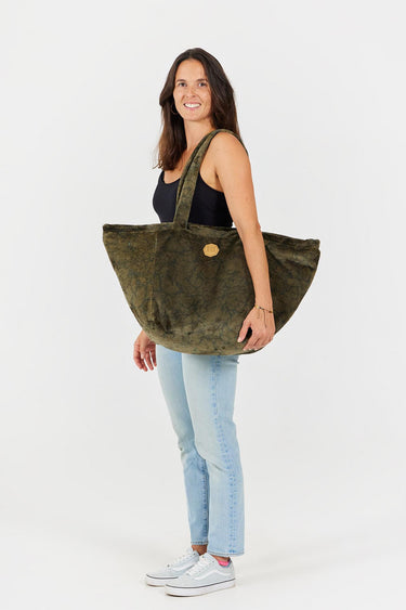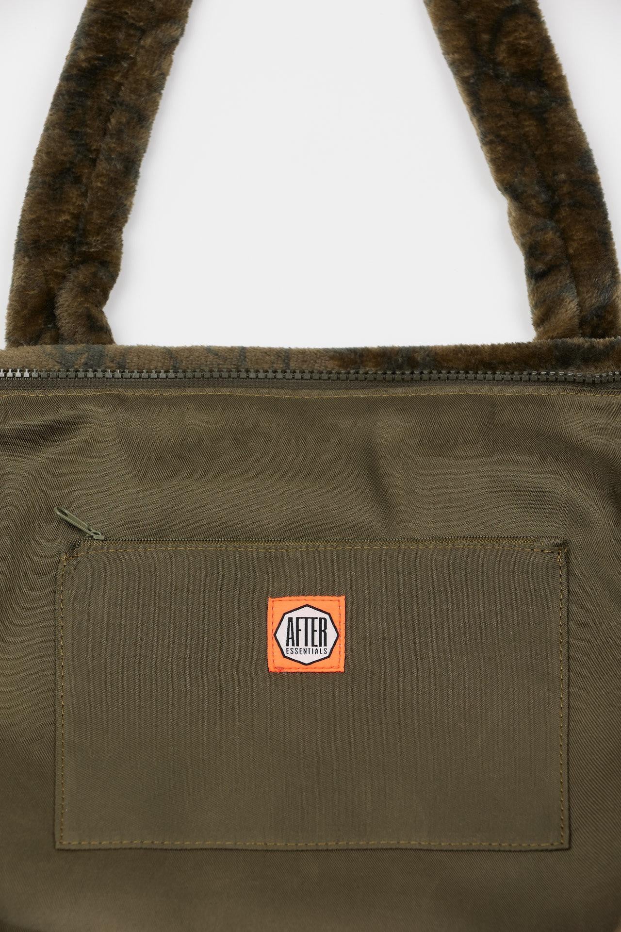 The Resin Sofa Bag, featuring a tone-on-tone khaki green print, is inspired by the natural shades of tinted resin. Made from thick 100% recycled fleece, it brings a refined and contemporary touch to your winter look. Practical and spacious, it’s the perfect companion for your days in the city, combining urban style with an outdoor spirit.